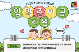 한민일보 서울포커스 임경복 기자 | 안성시는 2026년부터 어린이집 입학준비금 지원사업을 시행한다고 밝혔다. 이번 사업은 어린이집을 이용하는 영유아의 보육 공공성을 강화하고 보호자의 양육비 부담을 줄이기 위해 마련됐으며, 관내 어린이집에 최초로 입소하는 영유아를 대상으로 지원한다. 입학준비금은 영유아가 어린이집 입소 시 필요한 준비물 구입 등에 사용할 수 있는 경비로, 실비 기준 최대 10만원까지 안성사랑상품권(지역화폐)으로 지원된다. 이를 통해 지역 경제 활성화에도 기여할 것으로 기대된다. 지원 기준은 어린이집 입소 시점을 기준으로 해당 영유아가 안성시에 6개월 이상 주민등록을 두고 있어야 하며, 관내 어린이집 신규 입소 시 최초 1회 지원된다. 신청 방법은 어린이집 입소 후 12개월 이내에 보호자가 입학준비금 관련 영수증과 신분증을 지참해 주소지 읍·면·동 행정복지센터를 방문하면 된다.