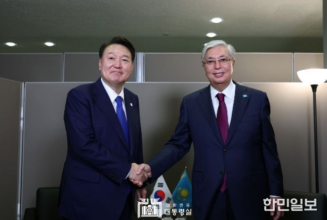 한민일보 서울포커스 임경복 기자 | 제78차 유엔총회 고위급 회기 참석을 위해 미국 뉴욕을 방문 중인 윤석열 대통령은 9월 19일 오후 '카슴-조마르트 토카예프(Kassym-Jomart Tokayev)' 카자흐스탄 대통령과 취임 이후 처음으로 정상회담을 가졌다.