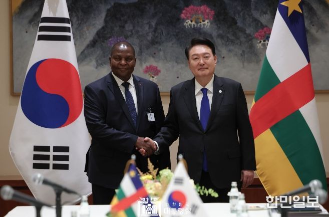 한민일보 서울포커스 임경복 기자 | 제78차 유엔총회 고위급 회기 참석을 위해 미국 뉴욕을 방문 중인 윤석열 대통령은 9월 20일 오전 '포스탱-아르크앙즈 투아데라(Faustin-Archange Touadera)' 중앙아프리카공화국 대통령과 정상회담을 가졌다.
