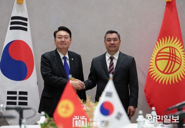 한민일보 서울포커스 임경복 기자 | 제78차 유엔총회 고위급 회기 참석을 위해 미국 뉴욕을 방문 중인 윤석열 대통령은 9월 20일 오전 '사디르 자파로프(Sadyr Japarov)' 키르기스스탄 대통령과 취임 이후 처음으로 정상회담을 가졌다.