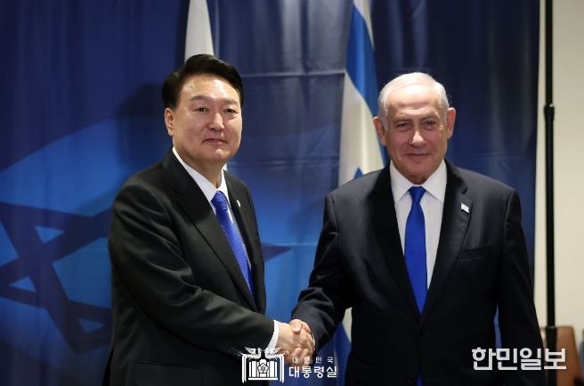 한민일보 서울포커스 임경복 기자 | 제78차 유엔총회 고위급 회기 참석을 위해 미국 뉴욕을 방문 중인 윤석열 대통령은 9월 20일 오후 '벤야민 네탄야후(Benjamin Netanyahu)' 이스라엘 총리와 취임 이후 처음으로 정상회담을 가졌다.