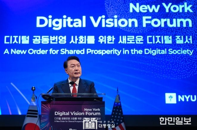 한민일보 서울포커스 임경복 기자 | 윤석열 대통령은 미국 현지시간 9월 21일 09:30 뉴욕대학교에서 개최된 ‘뉴욕 디지털 비전 포럼’에서 미국 대표 인사들과 세계적 석학들이 참석한 가운데, 기조연설을 통해 새로운 디지털 질서 규범인 「디지털 권리장전」의 기본 원칙들을 제시했다.
