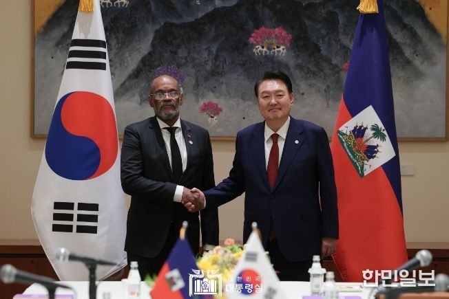 한민일보 서울포커스 임경복 기자 | 제78차 유엔총회 고위급 회기 참석을 위해 미국 뉴욕을 방문 중인 윤석열 대통령은 9월 21일 오후 '아리엘 앙리(Ariel Henry)' 아이티 총리와 정상회담을 가졌다.