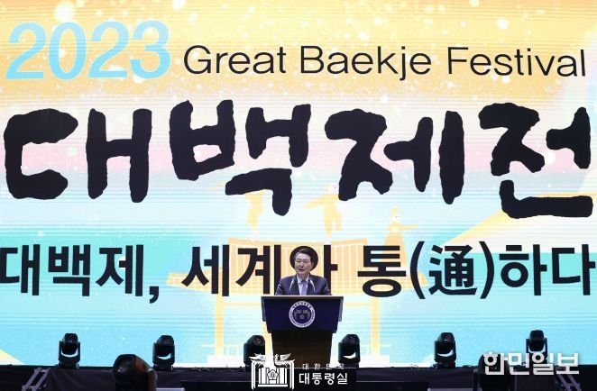 한민일보 서울포커스 임경복 기자 | 윤석열 대통령은 9월 23일 저녁 충청남도 공주시 금강신관공원에서 열린 2023 대백제전 개막식에 참석했다.