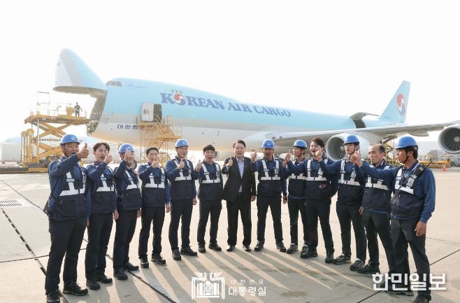 한민일보 서울포커스 임경복 기자 | 윤석열 대통령은 9월 2일 오후, 인천국제공항 대한항공 화물 터미널을 방문해, 항공 화물 수출 현장을 둘러보고 현장 근로자들을 격려했다.