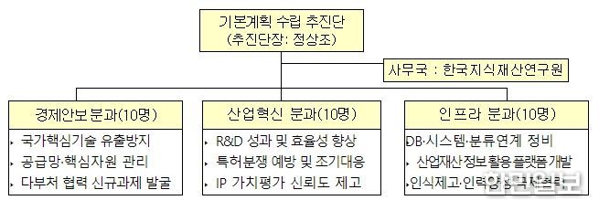 추진단은'산업재산 정보의 관리 및 활용 촉진에 관한 법률'의 제정에 따라, 산업재산 정보 활용 기본계획(이하 ‘기본계획’)에 전문가의 의견을 반영하기 위한 적극행정의 일환으로 구성됐다. 서울대학교 정상조 교수를 단장으로 산업계, 학계·연구계, 공공·관리 등 30여명의 위원이 경제안보, 산업혁신, 인프라 등 3개 분과에서 활동하게 된다.
