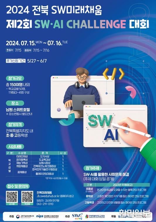 한민일보 서울포커스 박용남 기자 | 남원시에서 컴퓨팅 사고능력 등 미래인재를 발굴하는 ‘2024 SW·AI Challenge 대회’가 개최한다.