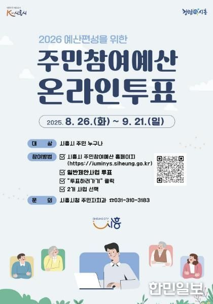 한민일보 서울포커스 유현민 기자 | 시흥시가 2026년 예산편성을 위한 주민참여예산 일반제안사업 온라인투표를 8월 26일부터 9월 21일까지 실시한다.