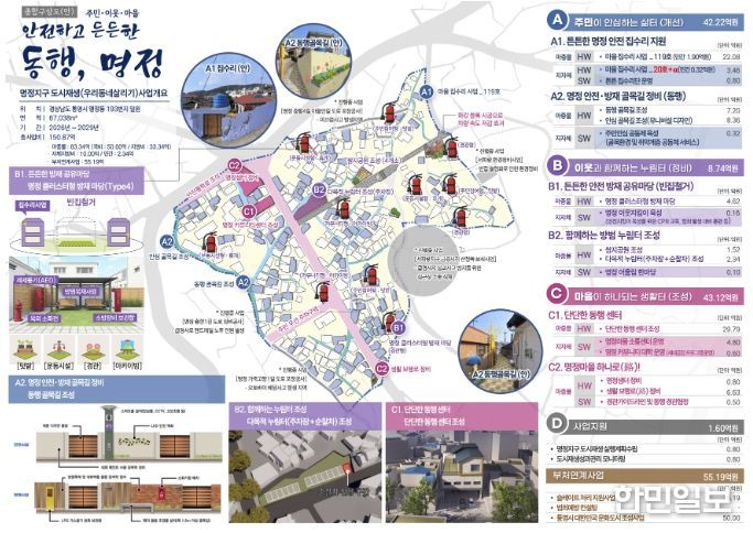 통영시 명정지구는 40년 이상 된 노후 건축물이 78.8%에 달하고, 독거노인과 기초생활수급자의 거주 비율이 매우 높은 곳으로, 2026년부터 2029년까지 4년간 총사업비 약 96억 원(국비 50억 원)이 투입돼 재생사업이 추진된다.