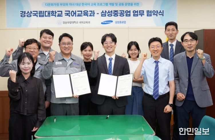 한민일보 서울포커스 박근원 기자 | 경상국립대학교 사범대학 국어교육과와 삼성중공업은 9월 4일 오후 가좌캠퍼스 언어교육실에서 거제시 삼성중공업에 재직하는 외국인 근로자 가족을 위한 글로벌학교를 만들기 위해 업무협약(MOU)을 체결했다.
