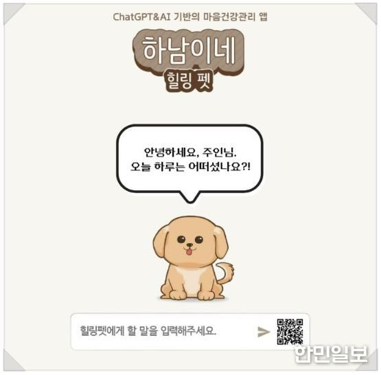 ‘하남이네 힐링펫’은 Chat GPT 기반의 AI 챗봇 앱으로, 귀여운 힐링펫 캐릭터와 대화하며 이용자의 심리적 부담을 줄여준다. 사용자는 앱 안에서 ‘감정일기’를 작성해 하루를 정리하고 내일을 계획할 수 있으며, AI는 대화를 분석해 우울·불안·스트레스 등 기분 상태와 심각도를 평가한다. 필요 시 전문가 상담으로 자연스럽게 연계되는 시스템을 갖췄다.