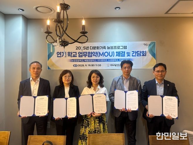 한민일보 서울포커스 김윤희 기자 | 달성군가족센터는 지난 19일 달성군 교육특구사업 중 하나인 ‘다문화가족 늘봄프로그램’ 추진을 위해 관내 초등·중학교 4개교와 업무협약(MOU)를 체결했다.
