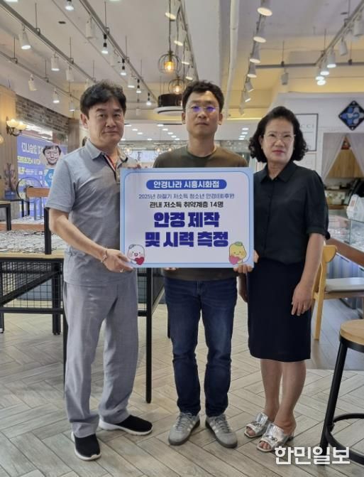 올해 사업에서는 관내 기초생활수급자, 한부모가정, 교육비 지원 대상 가구 청소년 14명을 선정해 맞춤 안경을 지원했다. 안경나라 시화점은 시력 검진과 함께 4만 원 상당의 안경테를, 협의체는 3만 원 상당의 렌즈를 각각 후원했다.