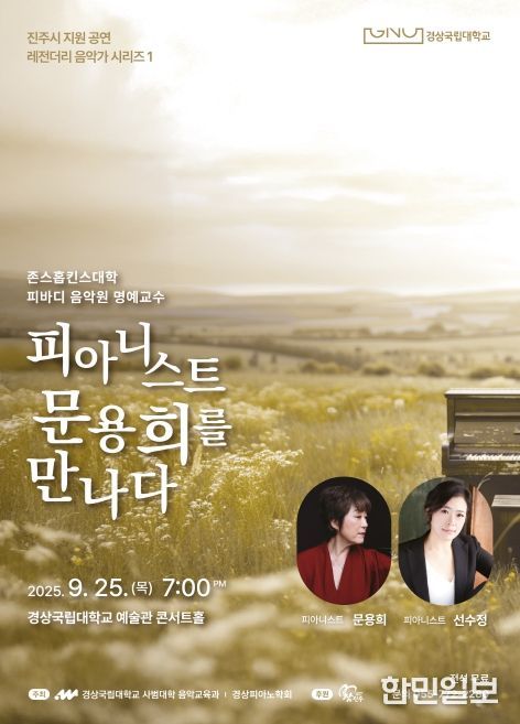 한민일보 서울포커스 박근원 기자 | 경상국립대학교 사범대학 음악교육과와 경상피아노학회는 세계적인 피아니스트 문용희 교수를 초청해, 9월 25일 오후 7시 경상국립대학교 예술관 콘서트홀에서 특별한 음악회 ‘피아니스트 문용희를 만나다’를 개최한다.