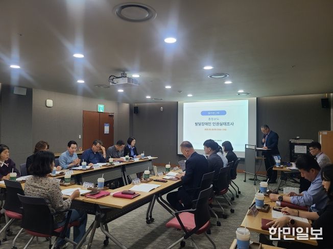 도 인권센터는 25일 도청 문예회관 세미나실에서 자문위원, 수행기관, 도 관련부서 등 20여 명이 참석한 가운데, ‘충청남도 발달장애인 인권 실태조사 연구용역 중간보고회’를 개최했다.