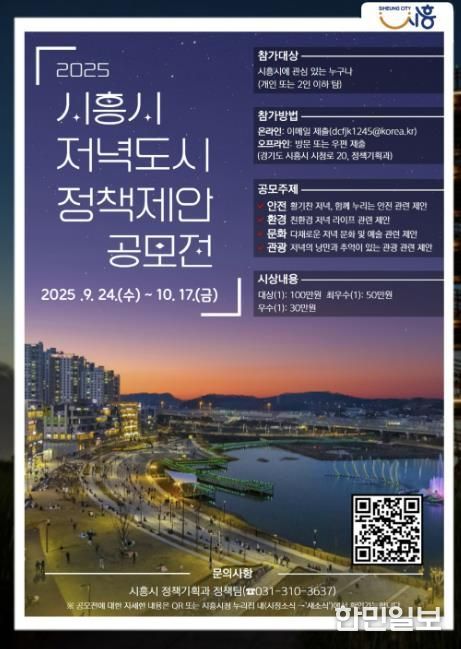 한민일보 서울포커스 유현민 기자 | 시흥시는 시민이 살고 싶은 저녁과 쉼이 있는 행복한 도시 시흥의 모습을 시민과 함께 구상하고 정책에 반영하고자 ‘2025년 시흥시 저녁도시 정책제안 공모전’을 진행한다.