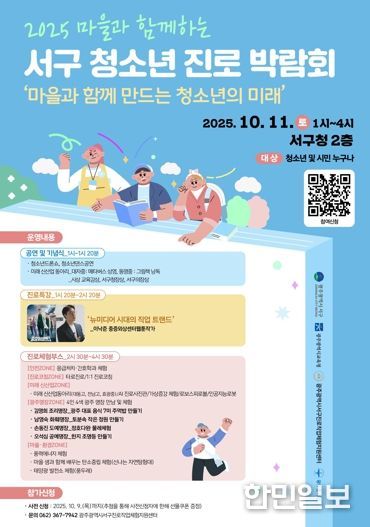 한민일보 서울포커스 박용남 기자 | 광주광역시 서구는 오는 11일 서구청 들불홀에서 ‘2025 마을과 함께하는 청소년 진로 박람회’를 개최한다.