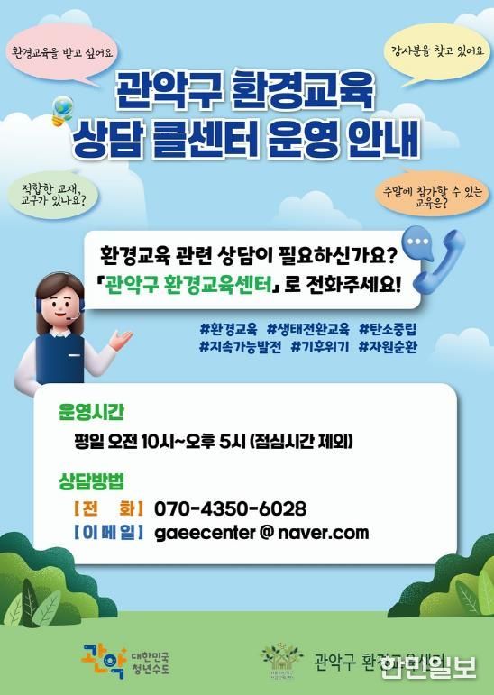 한편, 구는 주민과 기관‧기업의 환경교육 참여를 지원하기 위해 ‘관악구 환경교육 상담 콜센터’를 시범 운영하고 있다.