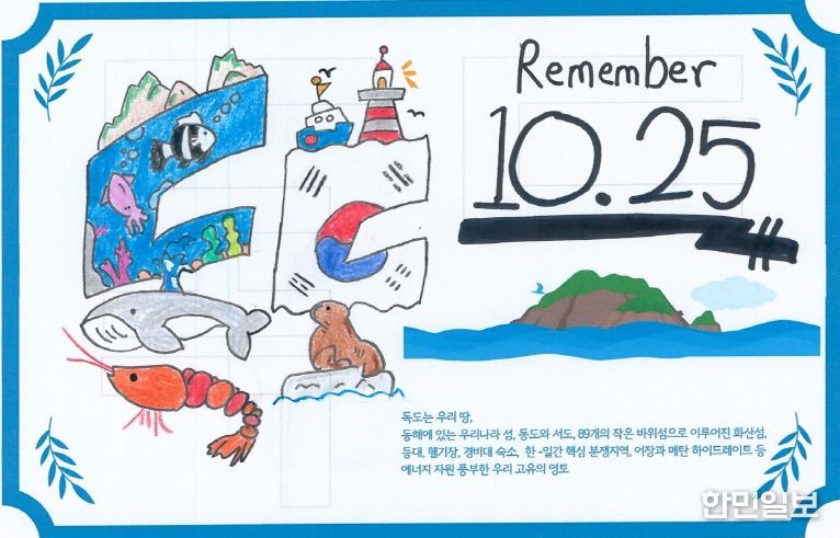 한민일보 서울포커스 임철현 기자 | 대구시교육청은 10월 독도교육 주간을 맞아 10월 13일부터 31일까지 초·중·고 학생을 대상으로 ‘대구 학생 독도사랑 실천 이벤트’를 운영한다고 밝혔다.