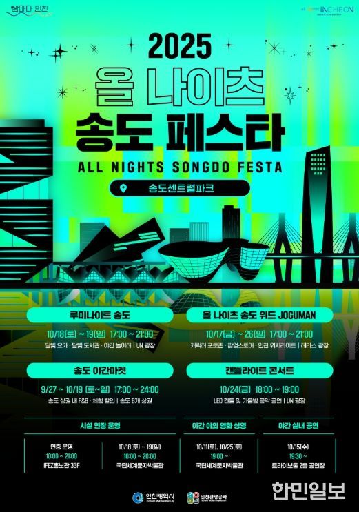 한민일보 서울포커스 유창렬 기자 | 인천광역시와 인천관광공사는 오는 10월 17일부터 26일까지 송도센트럴파크 일대에서 '2025 올 나이츠 송도 페스타'를 개최한다고 밝혔다.