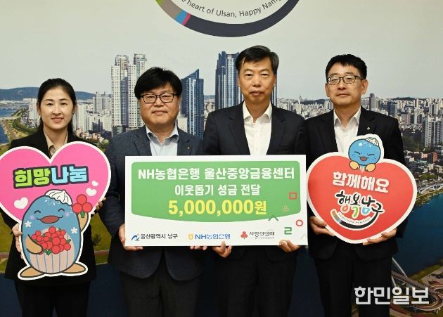 한민일보 서울포커스 기자 | NH농협은행 울산본부는 13일 남구청을 방문해 ‘경로의 달’을 기념하여 남구 지역 어르신들의 복지 향상을 위한 후원금 500만 원을 전달했다.