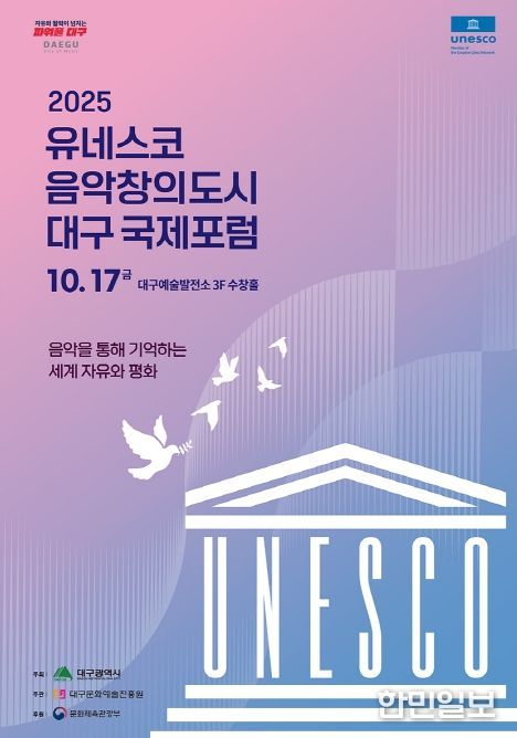 한민일보 서울포커스 김봉순 기자 | 대구광역시는 오는 10월 17일 대구예술발전소에서 ‘2025 유네스코 음악창의도시 대구국제포럼’을 개최한다.