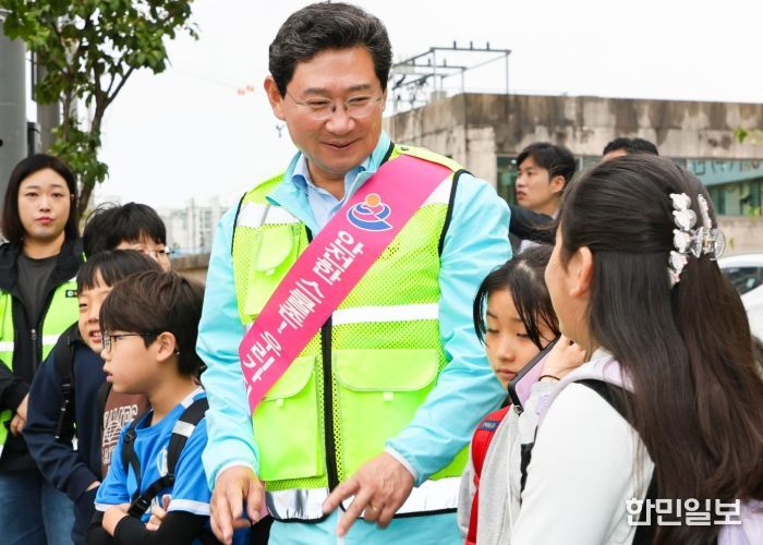 한민일보 서울포커스 김성윤 기자 | 이상일 용인특례시장은 14일 아침 처인구 고림로에 위치한 고진초등학교 정문 횡단보도에서 어린이들의 안전한 통학환경 조성을 위한 교통지도 봉사활동에 참여하고 학교 주변 통학로를 점검했다.