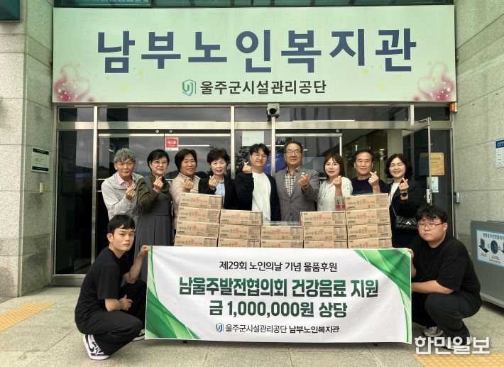 한민일보 서울포커스 기자 | 울주군시설관리공단 남부노인복지관(관장 조덕행)은 10월 14일 남울주발전협의회(회장 한성율)로부터 100만원 상당의 건강음료 1,000개를 기부받았다.