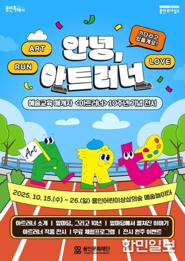 한민일보 서울포커스 김성윤 기자 | (재)용인문화재단은 예술교육 매개자 ‘아트러너(Art Runner)’ 사업 10주년을 맞아 오는 10월 15일부터 26일까지 용인어린이상상의숲 예술놀이터에서 기념 전시 '안녕, 아트러너'를 개최한다.