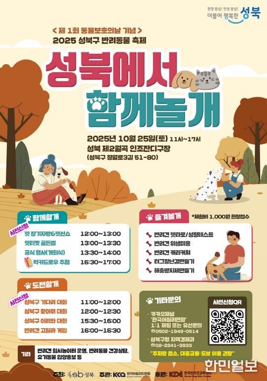 한민일보 서울포커스 김봉순 기자 | 서울 성북구가 2025년 성북구 반려동물 축제 ‘성북에서 함께놀개’를 오는 10월 25일 토요일 성북 제2월곡잔디구장에서 개최한다.