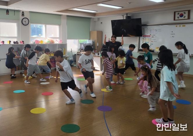 한민일보 서울포커스 임철현 기자 | 제주도교육청 동남초등학교병설유치원은 13일 유치원 원아와 1학년 2학급을 대상으로 유·초 이음 사업으로 ‘전래야 놀자! 공동체 놀이’ 프로그램을 운영했다.