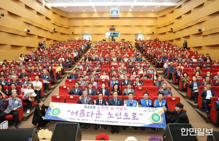 한민일보 서울포커스 박용남 기자 | 완주군이 주최하고 대한노인회 완주군지회(지회장 김영기)가 주관한 ‘제29회 노인의 날 기념행사’가 10월 경로의 달을 맞아 ‘어른다운 노인으로’라는 슬로건 아래 성황리에 개최됐다.