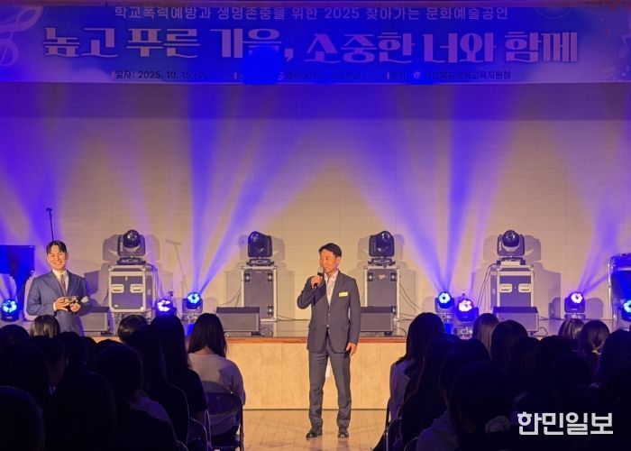 한민일보 서울포커스 임철현 기자 | 영덕교육지원청은 10월 14일부터 16일까지 관내 초, 중, 고등학교 5교에서 학생들과 교직원을 대상으로 2025 찾아가는 문화예술공연 ‘높고 푸른 가을, 소중한 너와 함께’를 성황리에 운영했다.