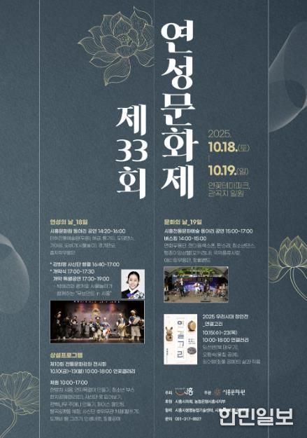 한민일보 서울포커스 유현민 기자 | 시흥시 지방보조금사업으로 시흥문화원이 주관하는 ‘2025년 제33회 연성문화제’가 오는 10월 18일부터 19일까지 이틀간 시흥 연꽃테마파크와 관곡지 일원에서 개최된다고 밝혔다.