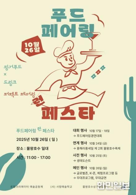 한편, 관련 부대행사로 오는 10월 17~18일 은계1어울림센터에서 ‘2025 세계푸드페어링대회’가 열리며, 수상자 3인에게는 시흥시장상 등이 수여된다. 참가비는 무료이며, 10월 16일까지 오후 12시까지 전자우편을 통해 신청할 수 있다.