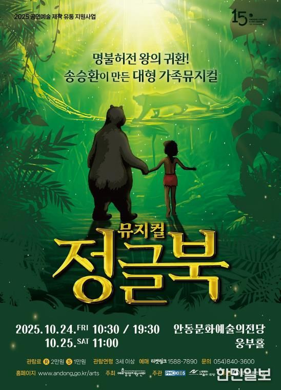 한민일보 서울포커스 김봉순 기자 | 안동문화예술의전당은 예술경영지원센터가 주최하는 2025 공연예술 지역 유통사업의 일환으로 ‘가족뮤지컬 정글북’을 오는 10월 24일 10시 30분과 19시 30분, 25일 11시 3회 웅부홀에 올린다.