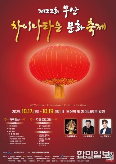 한민일보 서울포커스 임광현 기자 | 부산의 대표적인 축제인 '제22회 부산차이나타운 문화축제'가 10월 17~19일 3일간 부산역 광장과 차이나타운 일원에서 열린다. 이번 축제는 한중문화 공연과 중식요리 컨셉을 강조하기 위해 기획했고, 친환경 축제를 위한 다회용기 도입 등 사회적 이슈에 부합하는 축제로 준비되고 있다.