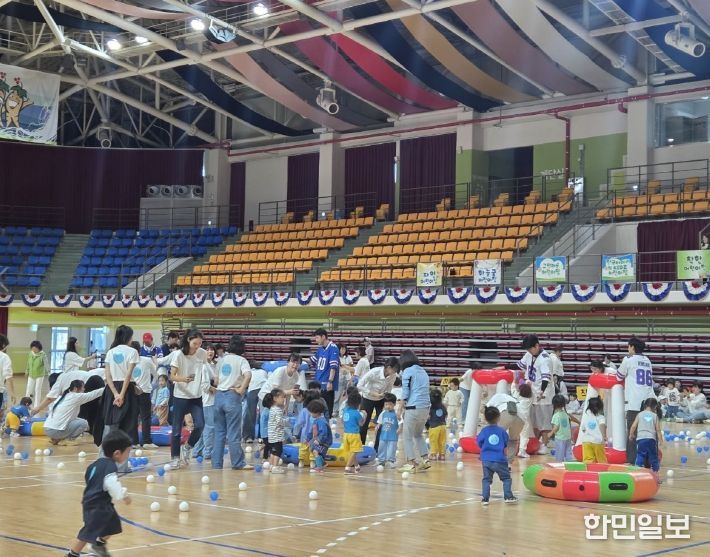 한민일보 서울포커스 유돈상 기자 | 금산군어린이집연합회(회장 김정순)는 지난 15일 금산종합체육관에서 관내 21개소 어린이집 영유아, 보육교직원, 학부모 약 600명이 함께하는 제9회 금산군 어린이집 연합 체육대회를 개최했으며 이 자리에 참여한 아이들의 웃음꽃이 활짝 피어났다.