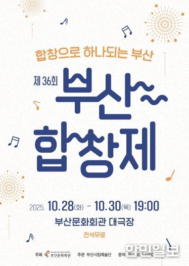 부산시립합창단(예술감독 이기선)이 마련한 『제36회 부산합창제』가 10월 28일부터 30일까지 3일간 오후 7시 부산문화회관 대극장에서 개최된다. 1985년 시작된 부산합창제는 부산 지역에서 가장 오랜 전통을 자랑하는 합창 축제로, 올해로 제36회를 맞이한다.