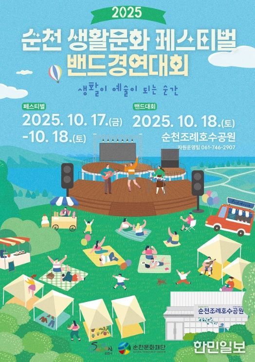 한민일보 서울포커스 임광현 기자 | (재)순천문화재단은 오는 17일부터 18일까지 조례호수공원 일원에서 ‘제6회 순천생활문화페스티벌’을, 18일에는 ‘제5회 순천생활문화 밴드 경연대회’를 개최한다.
