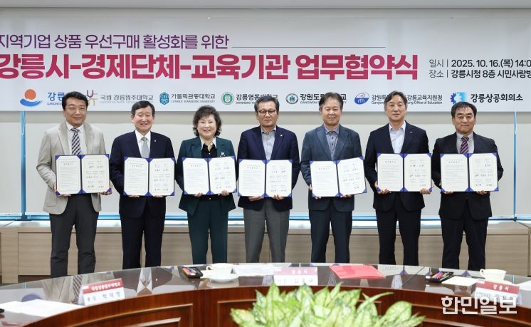 한민일보 서울포커스 임경복 기자 | 강릉시는 16일 오후 2시 시청 8층 시민사랑방에서 경제단체 및 교육기관과 함께 지역기업 판로 확대와 상생 기반 조성을 위한 ‘지역기업 상품 우선구매 업무협약식’을 개최했다.