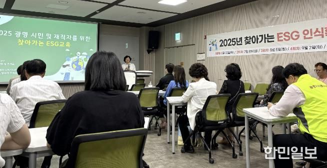 한민일보 서울포커스 임광현 기자 | 광명시는 시민과 기업의 환경·사회·지배구조(ESG) 인식 제고와 실천 역량 강화를 위해 추진한 ‘2025년 찾아가는 ESG 교육’을 지난 15일 5회차 교육을 끝으로 마무리했다.