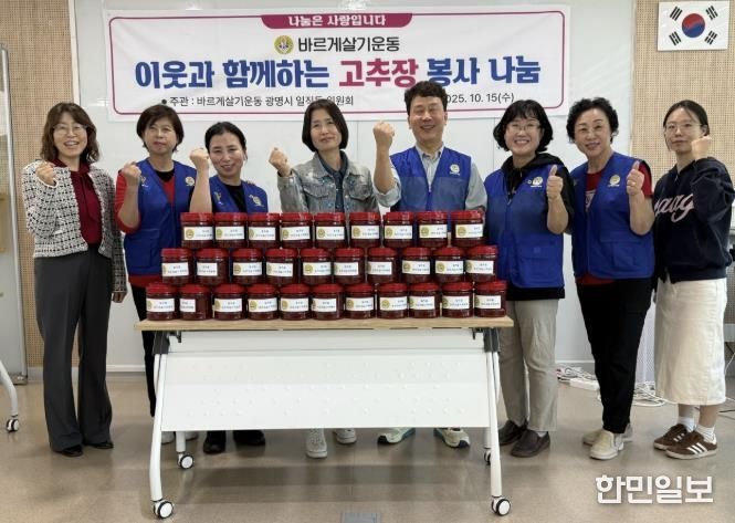 한민일보 서울포커스 임광현 기자 | 광명시 일직동 바르게살기위원회는 지난 15일 관내 어려운 이웃을 돕기 위해 ‘이웃과 함께 하는 고추장 나눔 봉사’ 활동을 실시했다.