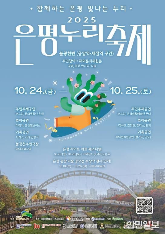 한민일보 서울포커스 임광현 기자 | 서울 은평구는 오는 24일부터 25일까지 불광천 변 일대에서 은평문화재단 주관으로 ‘2025 은평누리축제’를 개최한다고 밝혔다.