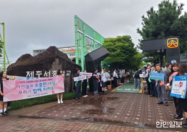 한민일보 서울포커스 임철현 기자 | 제주도교육청 제주서중학교는 16일 오전 8시부터 8시 30분까지 아침 등교 시간을 활용하여, 제주특별자치도교육청과 함께하는 ‘2025 자살예방 생명사랑 릴레이 캠페인’을 진행했다.