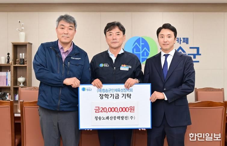 한민일보 서울포커스 김봉순 기자 | 청송노래산풍력발전(주)은 지난 16일 지역사회와의 상생 및 미래 인재 육성을 위해 (재)청송군인재육성장학회에 장학금 2천만 원을 기탁했다.