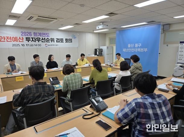 한민일보 서울포커스 기자 | 울산 동구는 10월 17일 오후 2시 3층 재난상황실에서 재난안전 관련 담당자들이 함께 2026년 재난 안전 예산 우선순위를 검토했다.