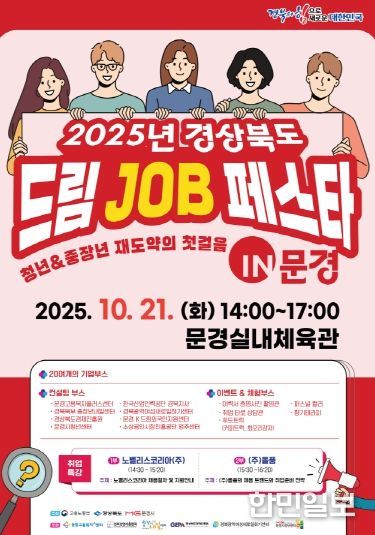 한민일보 서울포커스 김봉순 기자 | 문경시는 오는 21일 오후 2시, 문경실내체육관에서 청년과 중장년 등을 위한 취업박람회를 개최한다. 고용노동부 영주지청과 경북도, 문경시가 주최하고 중장년내일센터, 문경시 청년센터 등 취업지원 기관이 공동으로 주관하는 채용행사다.