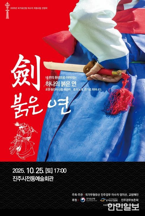 한민일보 서울포커스 임철현 기자 | 경상국립대학교(GNU·총장 권진회) 학술연구교수이자 국가무형유산 진주검무 이수자인 양지선 대표가 이끄는 ‘교방예인’이 10월 25일 오후 5시 진주시전통예술회관에서 창작무용극 ‘劍 붉은 연’을 선보인다. 이 작품은 2025년 국가유산청 이수자 지원사업 선정작으로, 고려부터 현대까지 시대를 초월한 네 명의 기생 이야기를 춤·노래·연기로 풀어낸 창작 춤 서사극이다.