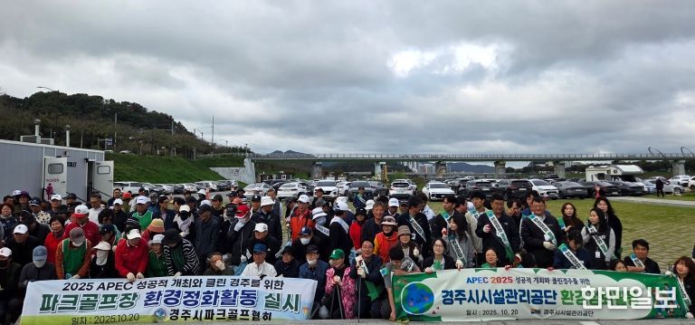 한민일보 서울포커스 김봉순 기자 | 경주시시설관리공단(이사장 김진태)은 10월 20일, 경주 제1·제2 파크골프장 일원에서 '2025 APEC 정상회의 경주'개최의 성공을 기원하며 유관기관 합동 환경정화 활동을 진행했다.